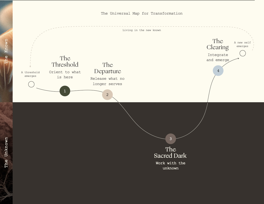 But threshold work offers a different view: Kari was making a strategic choice to extend her time in the unknown, to stay in The Sacred Dark long enough to allow something new to emerge.